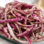 Lebanese-style sumac onions are all about light, bright, and fresh flavors. The onions are thinly sliced and massaged with lemon juice and sumac to soften them, making them milder while still packing that zesty punch.