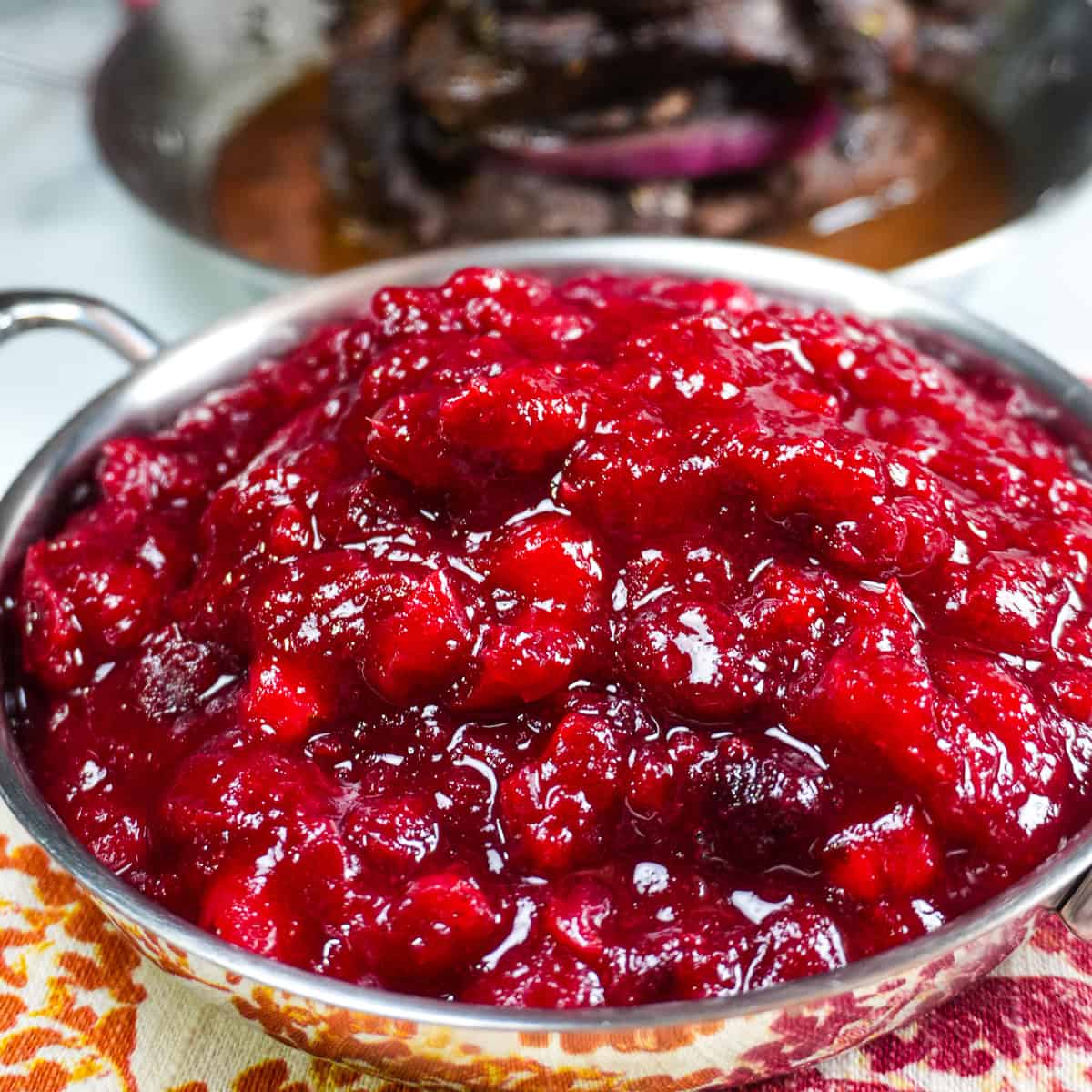 This Easy Cranberry-Ginger Chutney adds a bright, tangy-sweet flavor to any fall or holiday table and comes together quickly with simple, pantry-friendly ingredients. It’s a refreshing fruity twist on classic cranberry sauce, perfect as a side dish, flavorful weeknight addition, or the perfect complement to your shawarma, cheese boards, pork chops, or Thanksgiving leftovers sandwich.